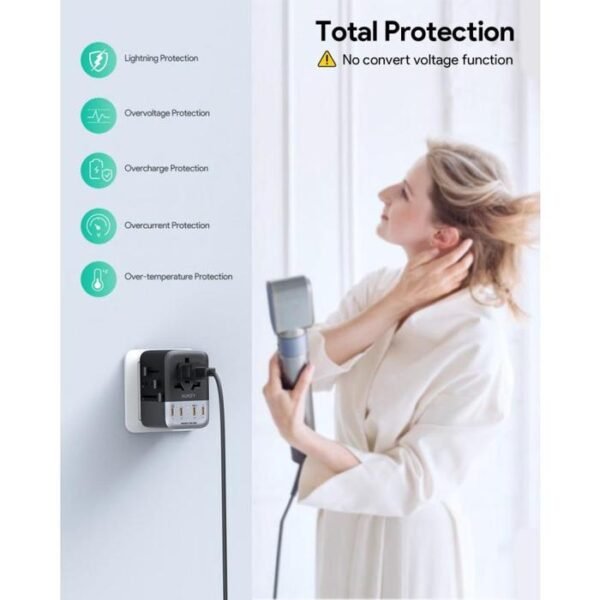 Aukey Universal Travel Adapter Gan Tech 65W 1 USB A 3 USB C PA-TA08A